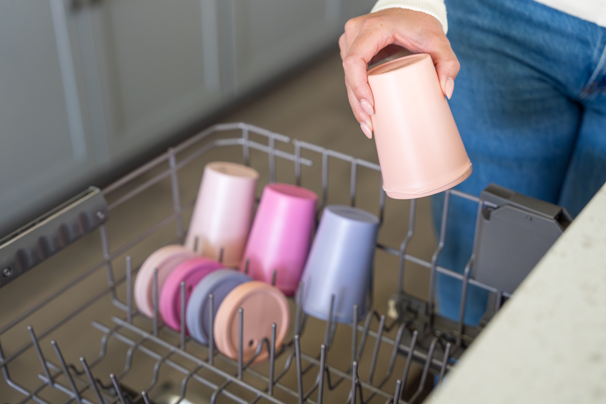This bamboo cup set is made from a blend of bamboo, melamine, and corn starch, making it durable and dishwasher safe. The set includes 4 bamboo cups, 4 twist-on bamboo lids, 4 silicone straws (with stoppers), and 4 silicone sleeves. It also features 4 fun color sets that every kid will love! It’s eco-friendly and makes a great gift for new parents. Click “Buy on Amazon” to see more.