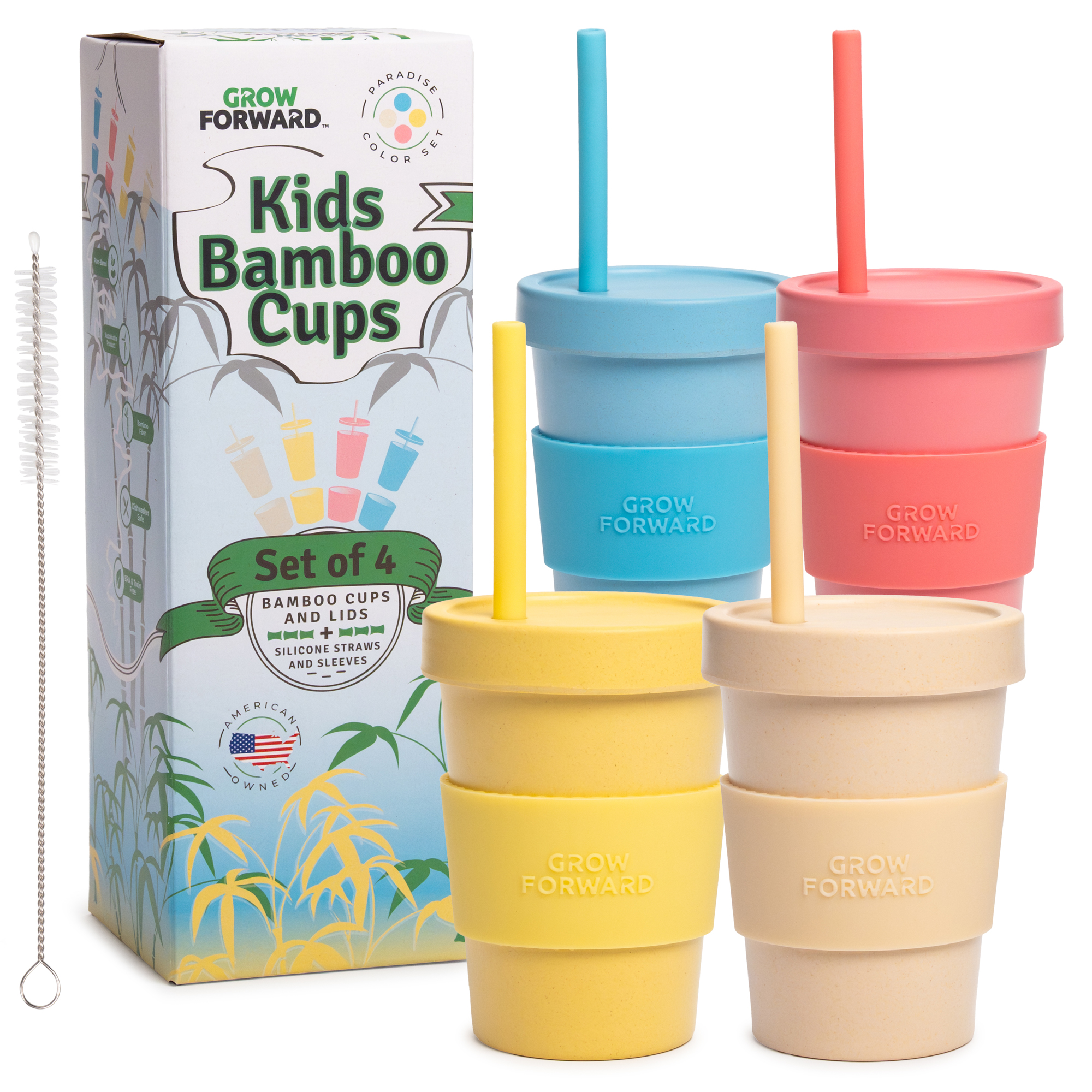 Kids Bamboo Cups with Lids and Straws